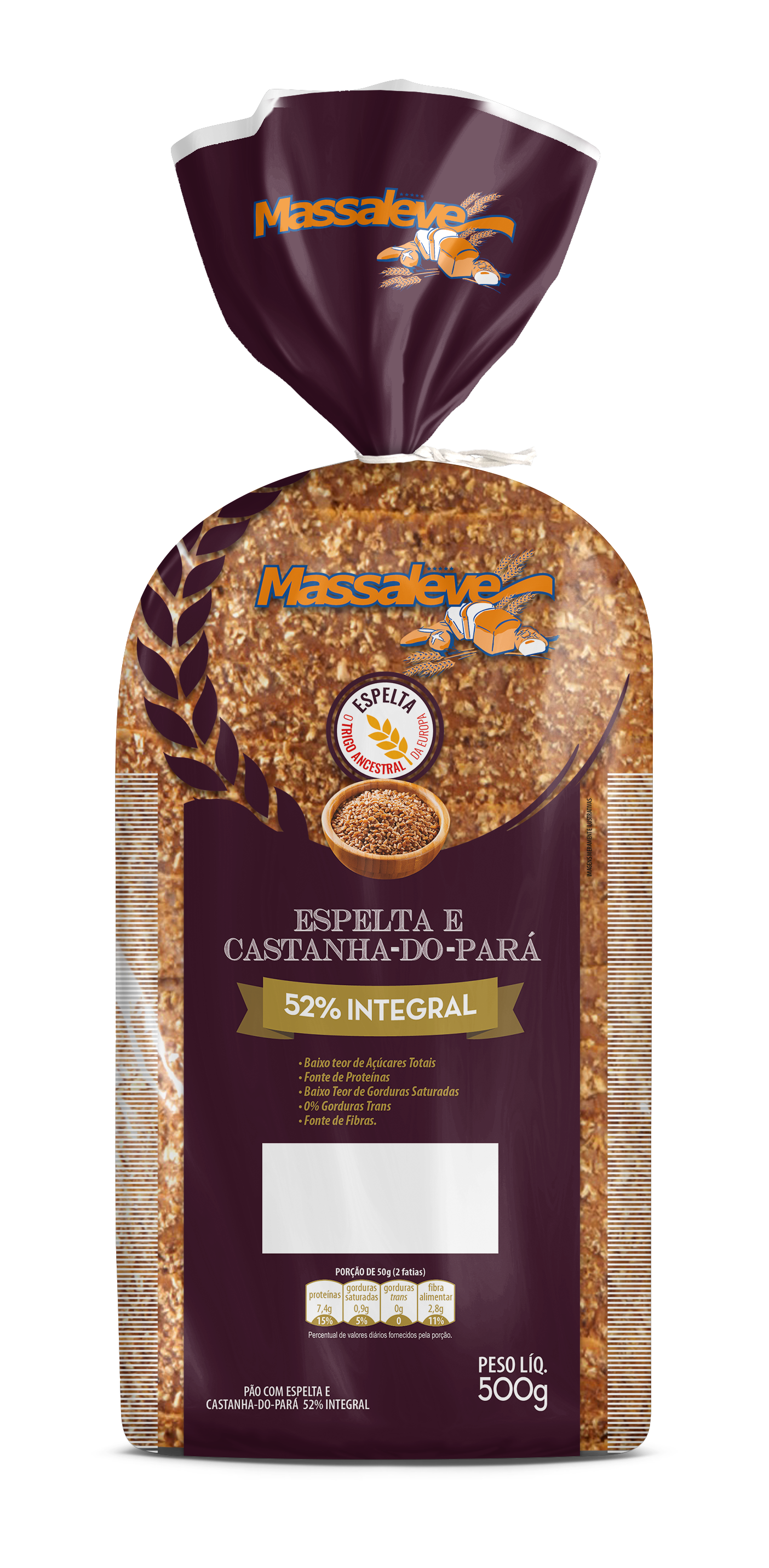 Pão de Forma 52% Integral Espelta e Castanha-do-pará 500g
