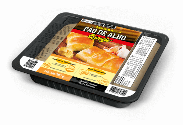 Farinha de trigo enriquecido com ferro e ácido fólico, gordura vegetal, margarina 50% lipídeos, alho em pasta, queijo mussarela, sal, açúcar, fermento biológico, propionato de cálcio, melhorador de massa: (Emulsificantes: polisorbato em pó, mono e diglicerídeos de ácidos graxos; estabilizante: carbonato de cálcio; antioxidante: ácido ascórbico; espessante: carboximetilcelulose sódica; agentes de tratamento da farinha: alfaamilase, azodicarbonamida) e orégano em flocos. CONTÉM GLÚTEN.