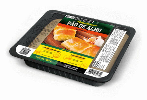 Farinha de trigo enriquecido com ferro e ácido fólico, gordura vegetal, margarina 50% lipídeos, alho em pasta, sal, açúcar, fermento biológico, propionato de cálcio, melhorador de massa: (Emulsificantes: polisorbato em pó, mono e diglicerídeos de ácidos graxos; estabilizante: carbonato de cálcio; antioxidante: ácido ascórbico; espessante: carboximetilcelulose sódica; agentes de tratamento da farinha: alfa-amilase, azodicarbonamida) e orégano em flocos. CONTÉM GLÚTEN.